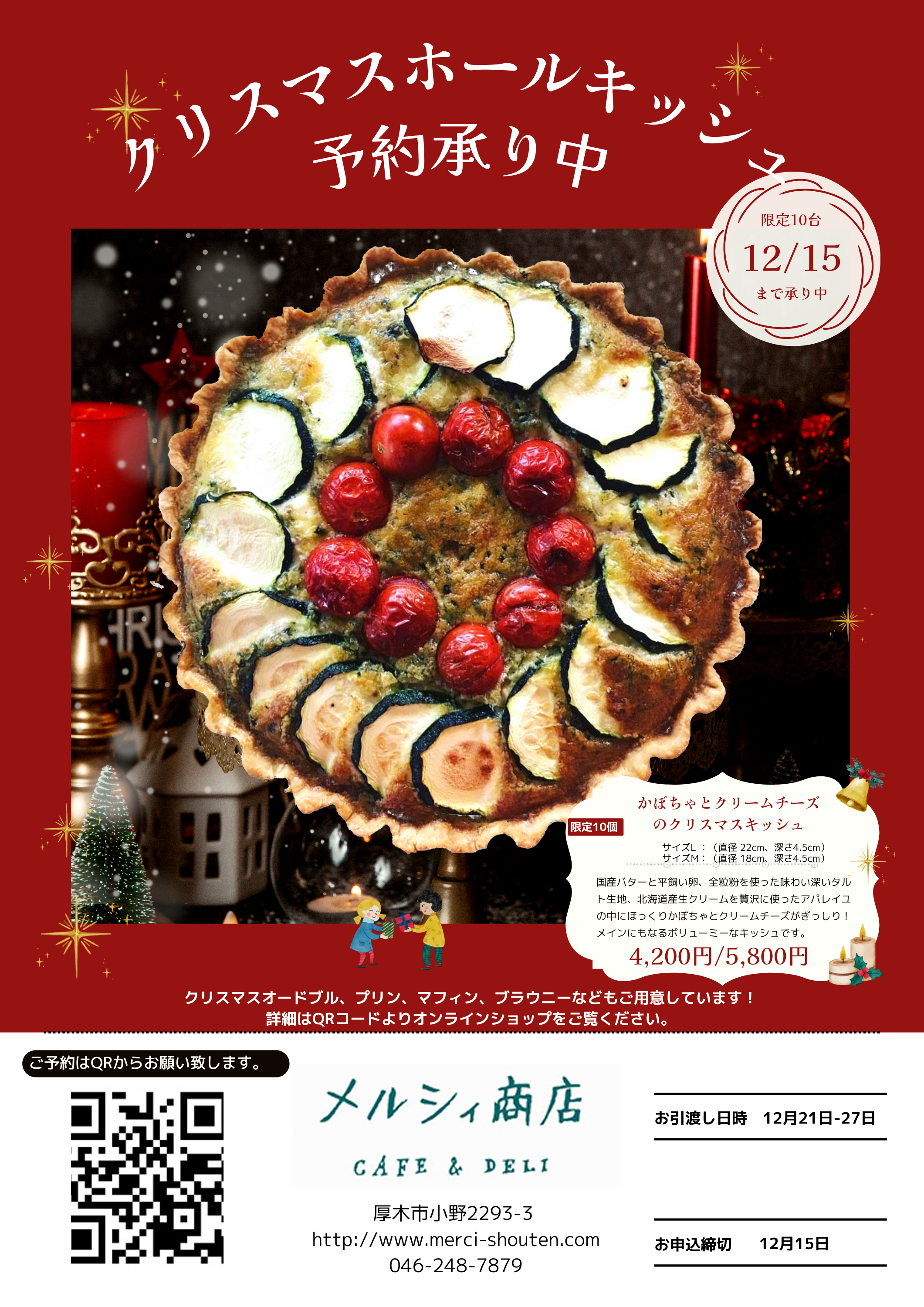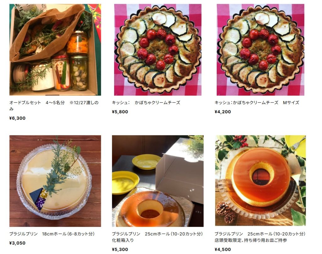 ホールキッシュ、ホールプリンの他、お正月の食卓に華を添えるオードブルセット、チョコレートブラウニーやマフィンのセットなどをご用意しております。